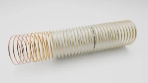 Tubo flessibile in poliuretano  con spirale rigida in PVC e filo in rame per messa a terra, atossico e idoneo per alimenti. Estremamente resistente all’abrasione e alla flessione, con capacità 5 volte superiori al PVC tradizionale.  Superficie interna liscia e resistente all’abrasione, prodotti chimici e acqua. Ideale per aspirazione di materiali abrasivi e polveri.
